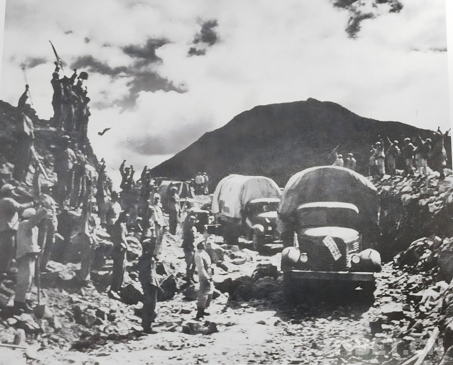 1951年10月,人民解放軍正式進(jìn)駐拉薩,隨著各項(xiàng)工作穩(wěn)步推進(jìn),局勢趨于穩(wěn)定。西藏工委、西藏軍區(qū)同西藏地方政府協(xié)商加快修建康藏公路的問題,于1952年在拉薩成立第一工程局(后改為第一施工局),1953年1月筑路委員會成立,下設(shè)西線筑路指揮部。進(jìn)藏部隊(duì)、地方干部與各族民工(西線筑路大軍)從拉薩出發(fā),先打通拉薩河南岸至墨竹工卡的山路,再頂著米拉山口的暴風(fēng)雪鋪筑路基,一點(diǎn)點(diǎn)將公路向著巴河的方向延伸。兩支筑路大軍隔著雪山峽谷,卻以同樣的堅(jiān)韌,在高原上刻下屬于中國人的英勇無畏!