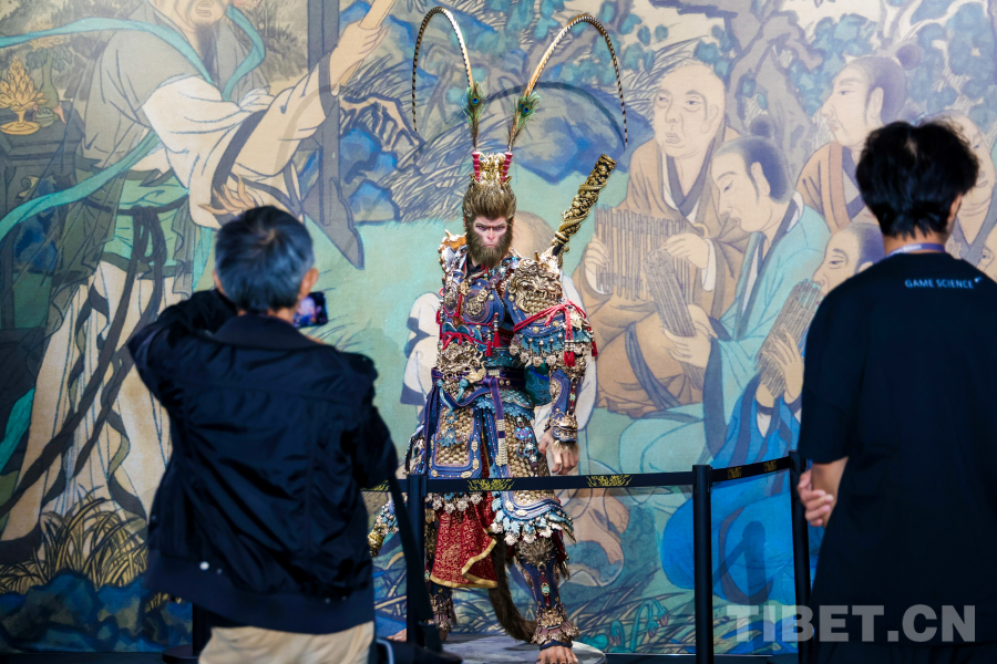 圖為《黑神話·悟空》在此次互聯(lián)網(wǎng)大會(huì)上展出的等身悟空模型,吸引了許多游戲愛好者駐足欣賞打卡。