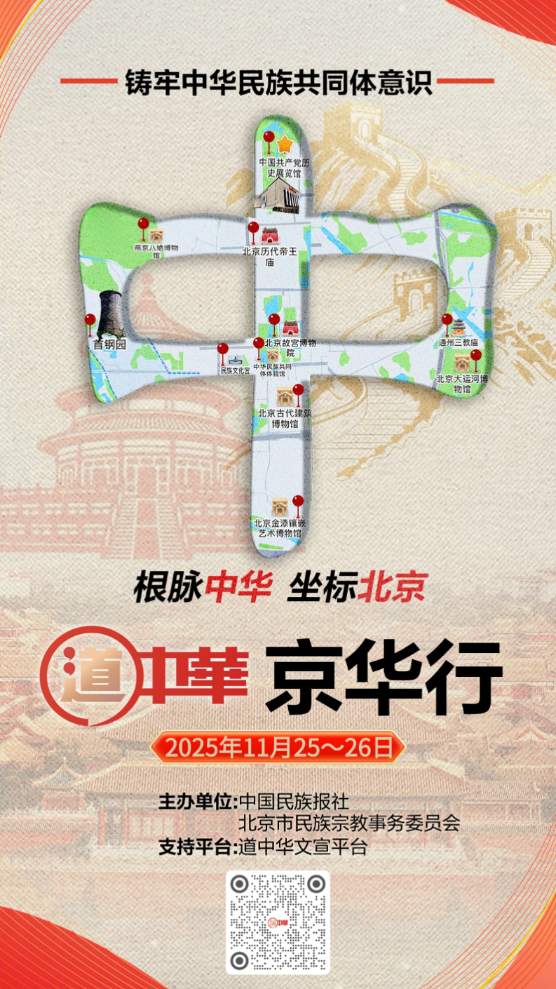 中國西藏網(wǎng)訊 11月25日,由中國民族報(bào)社(“道中華”文宣平臺(tái))和北京市民族宗教委聯(lián)合主辦的“道中華·京華行”主題活動(dòng)在北京正式開啟,一場講述鑄牢中華民族共同體意識(shí)故事之旅拉開帷幕。