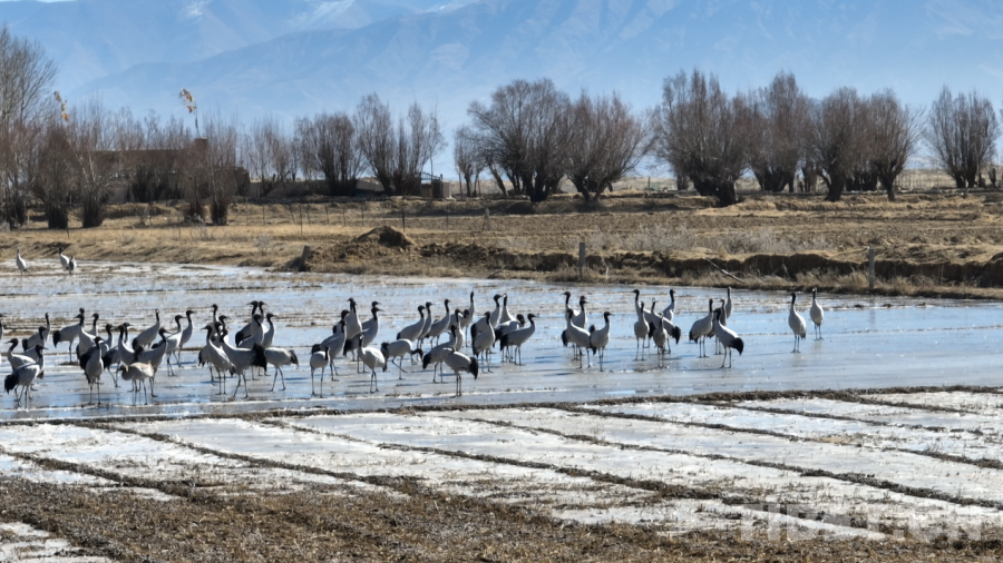 圖為南木林縣艾瑪鄉(xiāng)周邊黑頸鶴在棲息