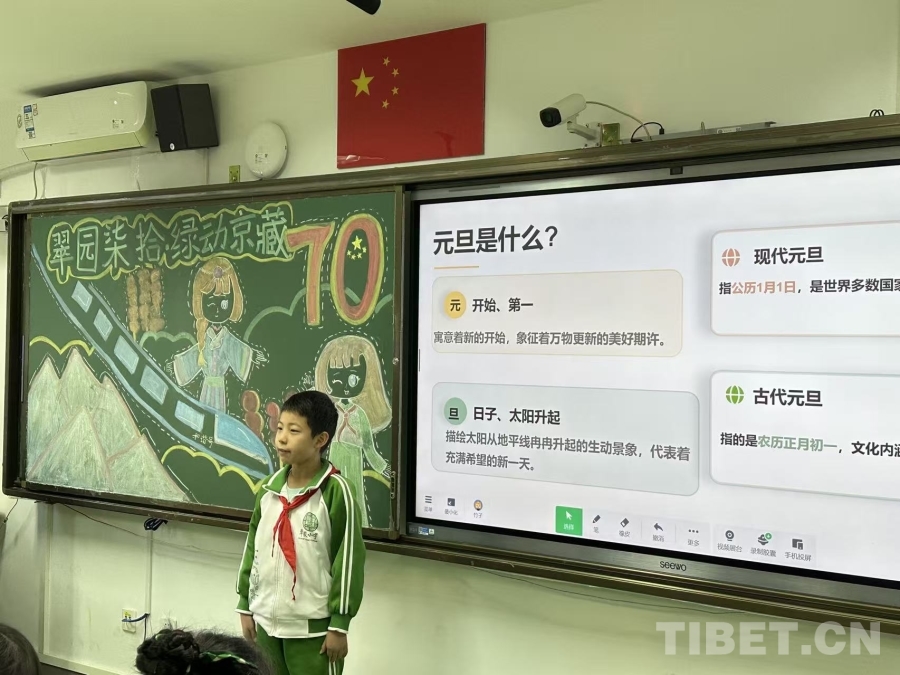為了歡迎遠(yuǎn)道而來(lái)的藏族小伙伴,翠微小學(xué)全體師生精心籌備了以“石榴花開(kāi)別樣紅,民族團(tuán)結(jié)一家親”為主題的系列交流活動(dòng)。30日上午,一場(chǎng)特殊的聯(lián)合隊(duì)會(huì)拉開(kāi)了深入交流的序幕。在隊(duì)會(huì)上,兩地孩子相互佩戴紅領(lǐng)巾、敬獻(xiàn)潔白哈達(dá),以最莊重又親切的禮節(jié)表達(dá)彼此間的尊重與祝福。大家共同觀看回顧雙方從寫(xiě)信相識(shí)到奔赴北京、準(zhǔn)備禮物、期待相見(jiàn)的溫情短片,聆聽(tīng)關(guān)于漢族元旦節(jié)日習(xí)俗和藏民族游牧文化的生動(dòng)介紹,在增進(jìn)了解中深化認(rèn)同。