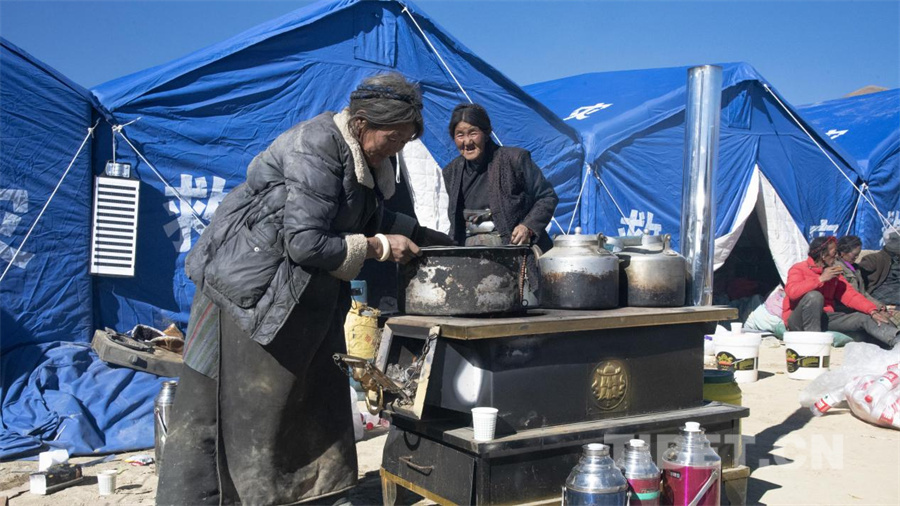 圖為地震發(fā)生第五日,在定日縣長(zhǎng)所鄉(xiāng)森嘎村受地震影響的僧尼正在生火做飯。地震發(fā)生的當(dāng)日,受災(zāi)僧尼已第一時(shí)間得到黨和政府的幫助并妥善安置(攝于2025年1月11日) 攝影:趙振宇