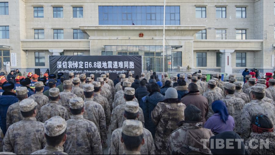 圖為西藏定日6.8級(jí)地震遇難同胞悼念儀式在受災(zāi)最嚴(yán)重的定日縣長(zhǎng)所鄉(xiāng)舉行(攝于2025年1月13日)攝影:趙振宇