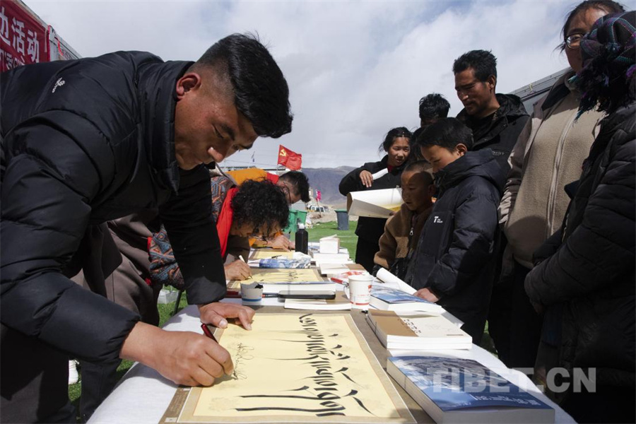 圖為藏歷新年之際,定結(jié)縣邀請(qǐng)日喀則市文聯(lián)書法家為受災(zāi)群眾送上藏歷新年祝福(攝于2025年3月1日)攝影:趙振宇