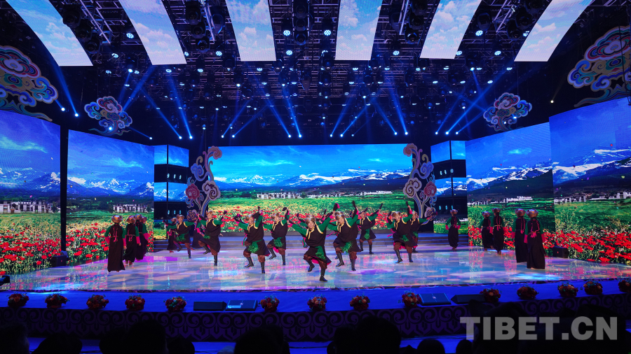 晚會以“鑄牢中華民族共同體意識、推進中華民族共同體建設”為主題,薈萃了青海省和西藏、四川、云南、甘肅等省區(qū)特色歌舞節(jié)目,包括藏戲、器樂演奏、史詩劇等多種藝術形式,50多名歌手用優(yōu)秀經典作品,唱響愛黨愛國、民族團結、幸福生活、砥礪奮進的旋律。