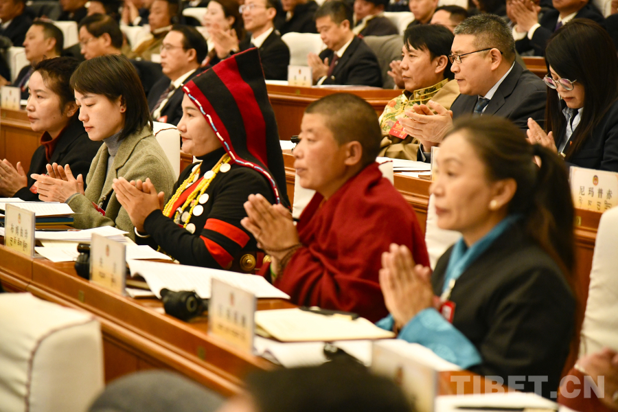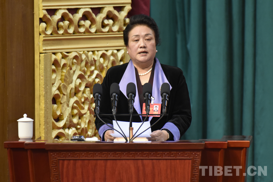 西藏自治區(qū)政協(xié)黨組成員、副主席卓嘎代表政協(xié)第十二屆西藏自治區(qū)委員會(huì)常務(wù)委員會(huì)向大會(huì)報(bào)告政協(xié)十二屆三次會(huì)議以來的提案工作情況。(中國西藏網(wǎng) 記者/王淑 趙振宇)