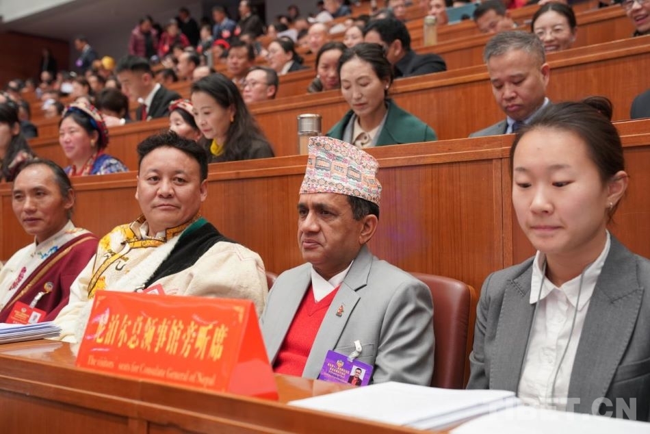 圖為尼泊爾駐拉薩總領(lǐng)事館負(fù)責(zé)人旁聽大會 攝影:王淑