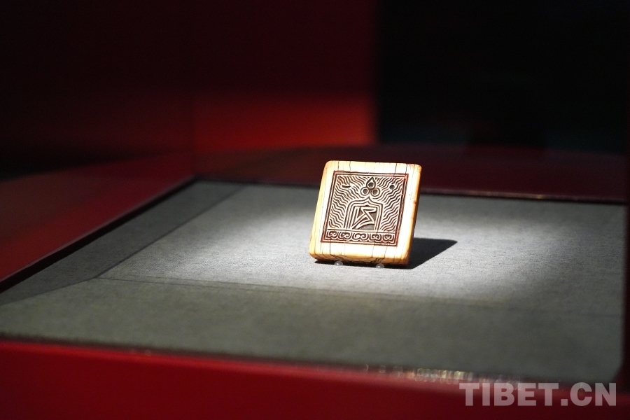 圖為現(xiàn)場展出的“薩”字印,此印為元代西藏薩迦地方官員的印章 攝影:王妍丹