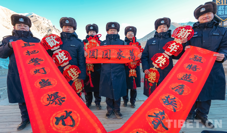 新春佳節(jié)來臨之際,雪峰巍巍。在海拔五千多米的珠峰大本營(yíng),西藏邊檢總站日喀則邊境管理支隊(duì)珠峰邊境派出所的民警,與來自天南地北的游客圍聚在一起。寒風(fēng)中飄起溫暖的哈達(dá),一聲聲“扎西德勒”伴著“新年好”,在離天空最近的地方交匯成真摯的祝愿。(中國(guó)西藏網(wǎng) 通訊員/葉軼)