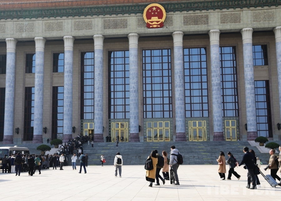 3月3日下午,本網記者在人民大會堂前,準備參加全國政協(xié)十四屆四次會議新聞發(fā)布會。攝影:劉莉