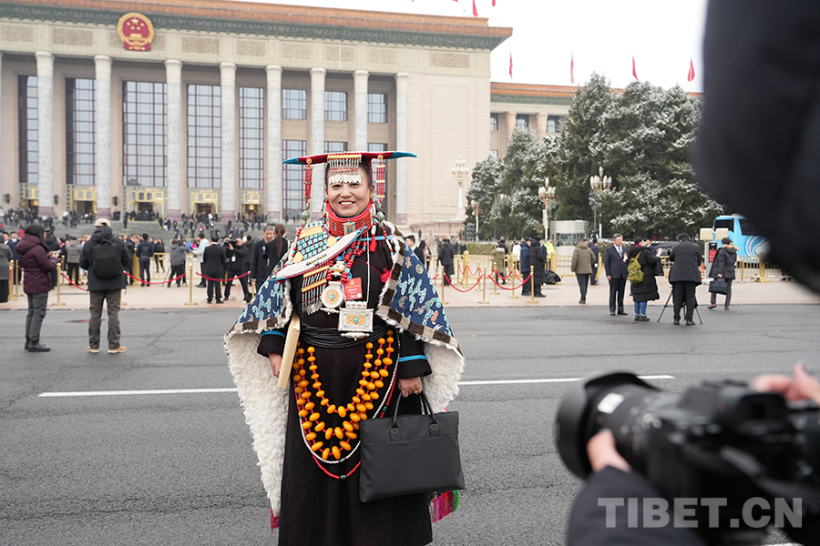 西藏代表團(tuán)格桑卓瑪代表接受媒體采訪 攝影:邊子捷