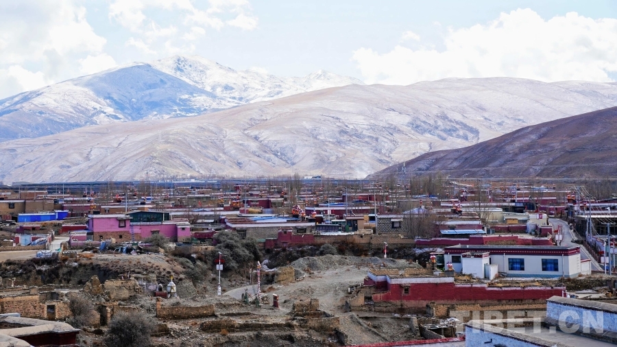曲松縣居民家和文化遺址融為一體,與遠處的雪山構成一幅美麗的圖景。