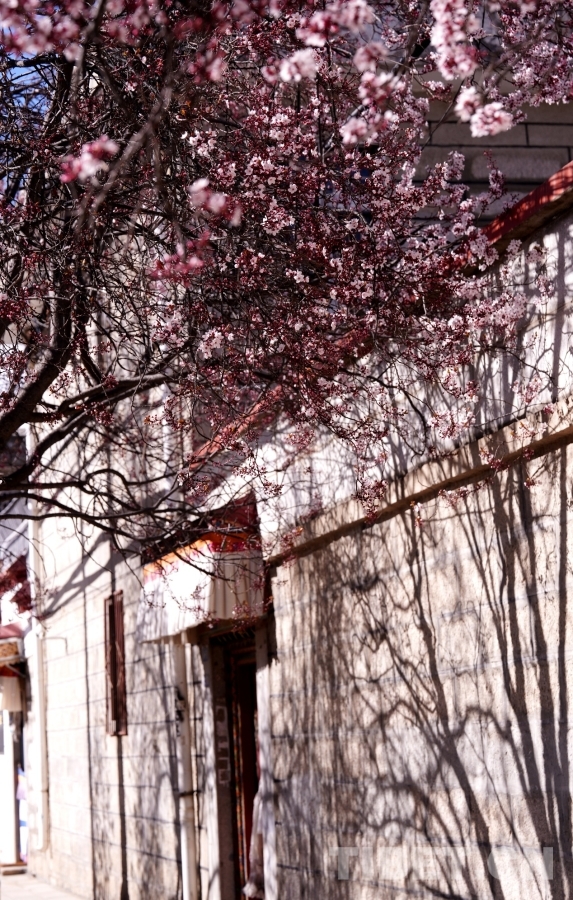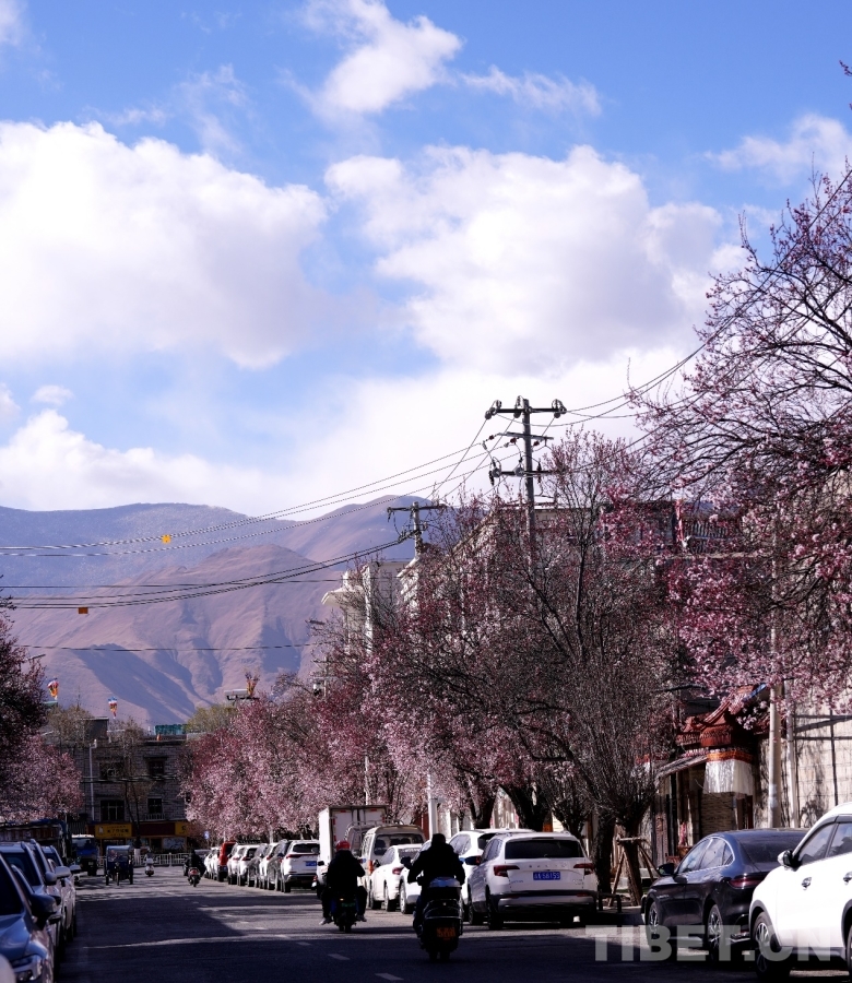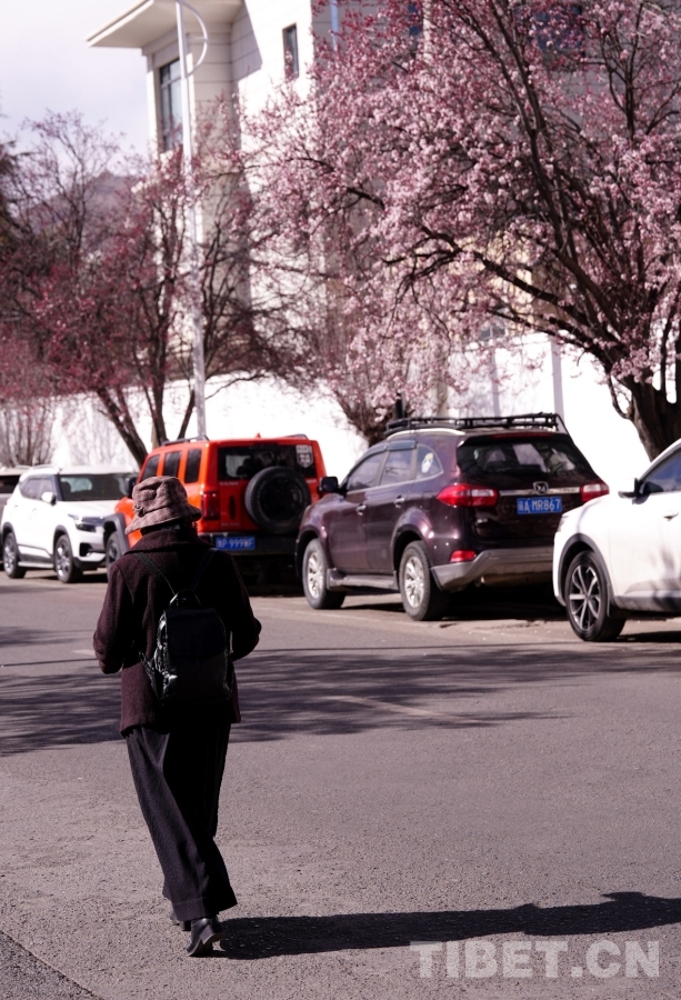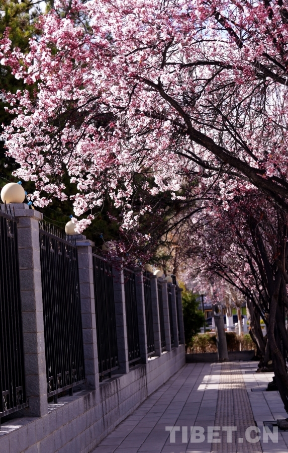 放眼望去,一樹樹春花爭相綻放,在春日的暖陽下顯得格外耀眼奪目。在這條被春花裝扮一新的街道上,隨處可見市民悠然自得的身影——有人漫步行走在花間道路,沉醉于滿目春色;有人靜坐在茶館門外的桃花樹下,一邊品味甜茶的醇香,一邊享受春日的愜意時光。花影、人影與街景交相輝映,處處洋溢著春日拉薩的生機與浪漫。