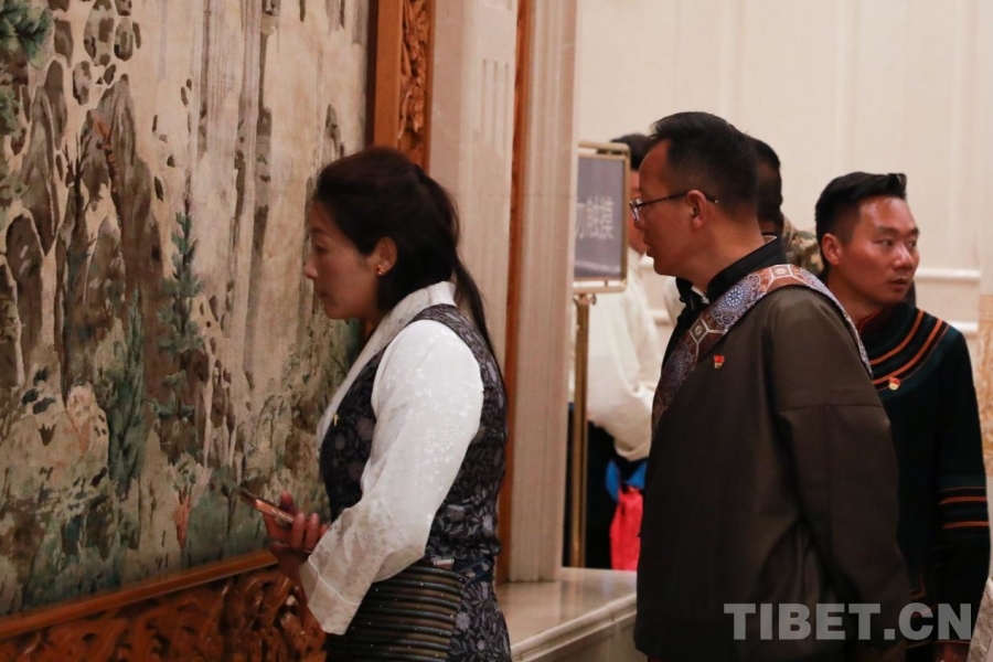 人民大會堂里,代表團成員認真參觀 攝影:陳衛(wèi)國