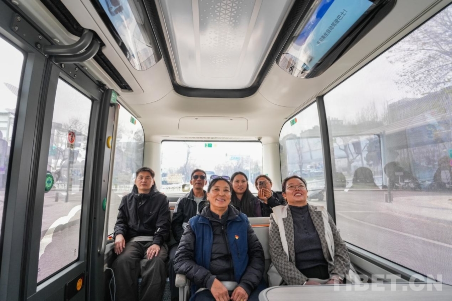 坐上無(wú)人自動(dòng)駕駛巴士,來(lái)自洛扎縣扎日鄉(xiāng)拉隆村的次仁桑珠難掩興奮,并用手機(jī)記錄下行駛過(guò)程?!艾F(xiàn)在進(jìn)入了AI時(shí)代,看來(lái)駕駛員已經(jīng)是夕陽(yáng)產(chǎn)業(yè)了?!彼囊痪渫嫘υ?,引得大家會(huì)心一笑。