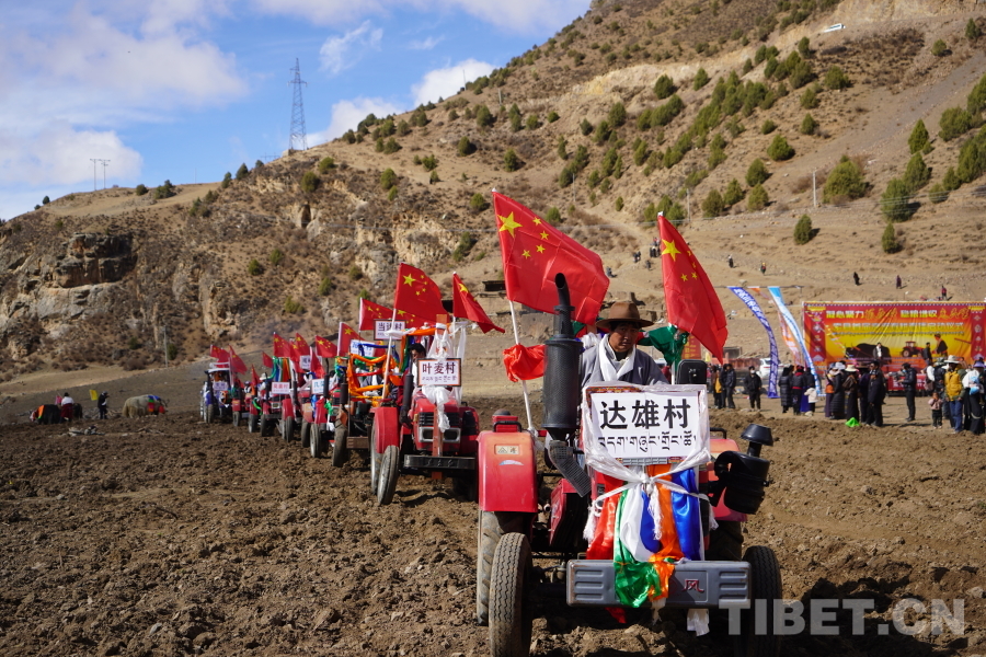 這是一次跨越時光的并軌。湛藍(lán)蒼穹下,身著盛裝的群眾手捧寓意五谷豐登的“切瑪”,拋灑青稞美酒,古老的祈福聲穿透晨霧;而在同一片田壟間,涂裝著高原紅的拖拉機(jī)列隊行進(jìn),鋒利的旋耕刀片劃開沉睡的沃土。一側(cè)是綿延千年的農(nóng)耕文化,一側(cè)是現(xiàn)代農(nóng)業(yè)的機(jī)械力量,兩者在海拔近4000米的高寒地帶交相輝映,繪就一幅新舊共生、協(xié)力向前的“春耕實景圖”。