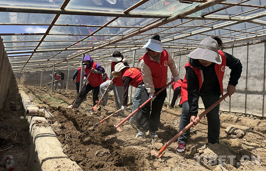 布貢村溫室大棚內(nèi),身著紅色志愿馬甲的干部職工分工協(xié)作、干勁十足。大家手持鐵鍬、鋤頭,對(duì)大棚內(nèi)土地進(jìn)行翻耕平整,清理雜草石塊,有序栽種土豆、蘿卜、青菜等作物,為高原特色種植筑牢基礎(chǔ)。同步開展的大棚周邊環(huán)境整治中,志愿者們對(duì)散落垃圾、雜物進(jìn)行拉網(wǎng)式清理,消除衛(wèi)生死角,讓大棚內(nèi)外環(huán)境面貌煥然一新。