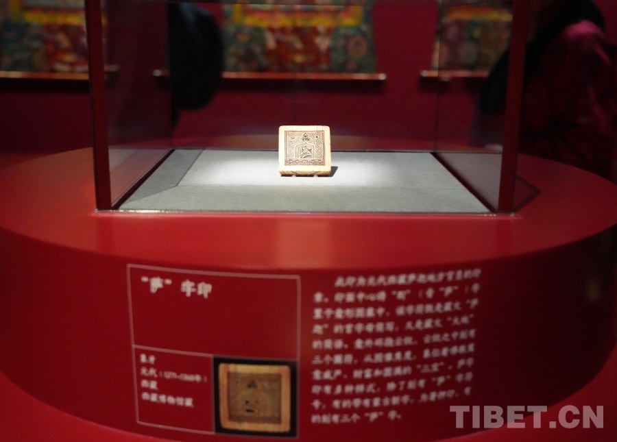 元代西藏薩迦地方官員的“薩”字印。印面中的字符是“薩迦”的首字母簡(jiǎn)寫(xiě),又是藏文“大地”的簡(jiǎn)語(yǔ)。
