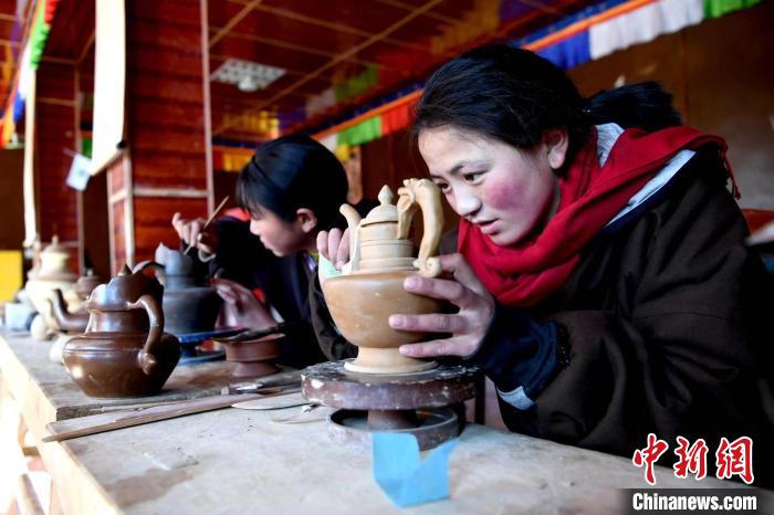藏族姑娘制作藏陶。安源 攝
