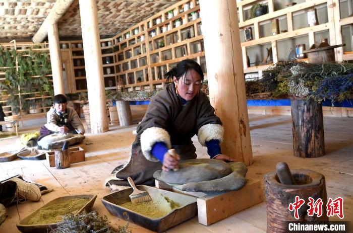在藏香制作傳習(xí)所,藏族女孩麥莫正認(rèn)真看著老師用開孔牦牛角擠制傳統(tǒng)藏香?!奥毟弋厴I(yè)后我原本可以當(dāng)老師,但是我還是回到家鄉(xiāng)學(xué)習(xí)藏香,因?yàn)槲蚁矚g家鄉(xiāng)的花。”麥莫介紹,藏香會(huì)用到高原杜鵑花、藏紅花、雪蓮花等幾十種鮮花、藥材,每到鮮花盛開的季節(jié),都會(huì)有一兩百個(gè)女孩一同采集鮮花、藥材。最近大家還開發(fā)了藏香的衍生品香包、掛件等,即將在壤塘縣集中展示銷售非遺產(chǎn)品的“非遺超市”售賣。