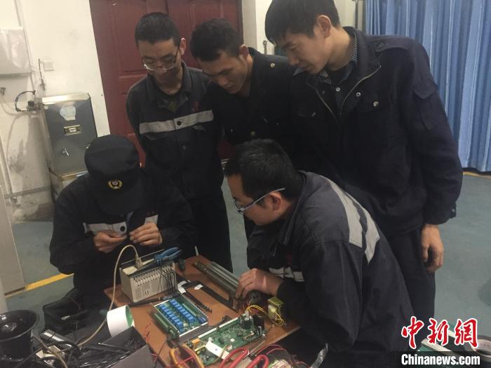 圖為攻關(guān)小組研制脫軌自動(dòng)報(bào)警裝置控制系統(tǒng)。蔡建庭 攝