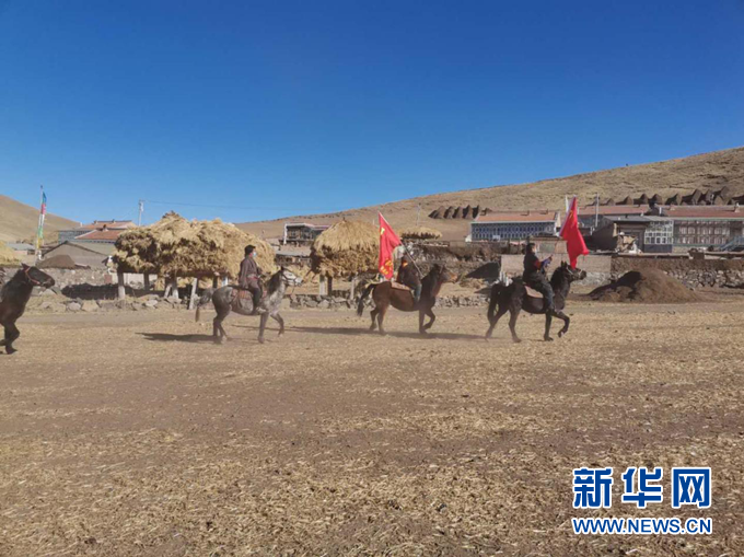 “馬背防疫隊(duì)”在走村入戶宣傳防疫知識(shí)。(甘南州委宣傳部供圖)