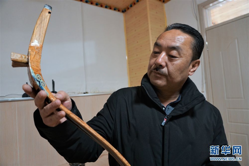 奧松多杰檢查制作完成的牛角弓成品(1月16日攝)。新華社記者 李占軼 攝