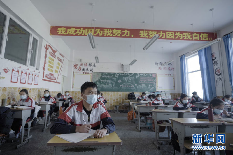 3月14日,海北州第一高級中學(xué)高三年級學(xué)生在教室內(nèi)上課。新華社 吳剛 攝