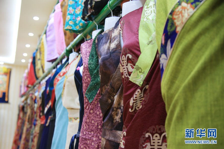 圖為諾布嶺民族服飾有限公司產(chǎn)品展覽室一角。新華網(wǎng) 馬洪婷 攝