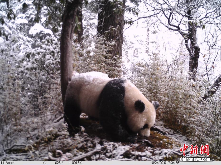 紅外相機(jī)拍攝到的大熊貓影像。九寨溝縣委宣傳部供圖