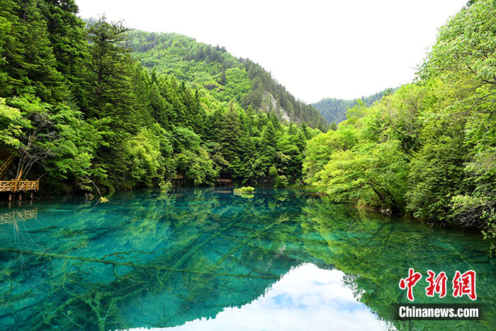 圖為6月19日拍攝的九寨溝風(fēng)光。中新社記者 安源 攝