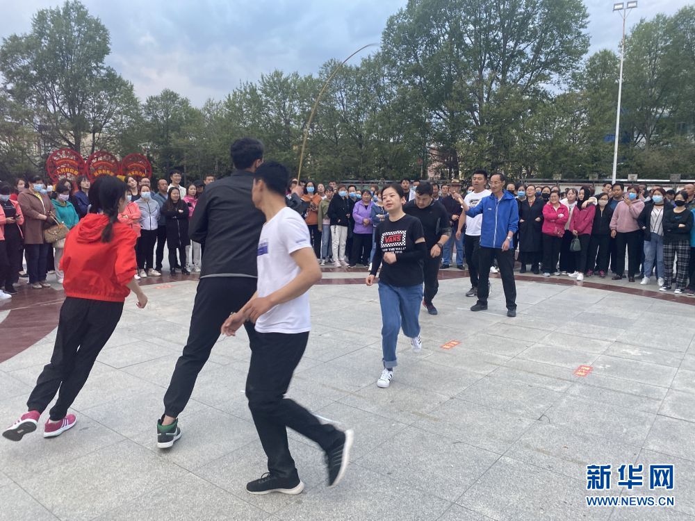 在青海省海北藏族自治州海晏縣西海鎮(zhèn)文化廣場,當(dāng)?shù)厝罕娫谂e行跳繩比賽(7月6日手機(jī)拍攝)。新華社記者 張子琪 攝