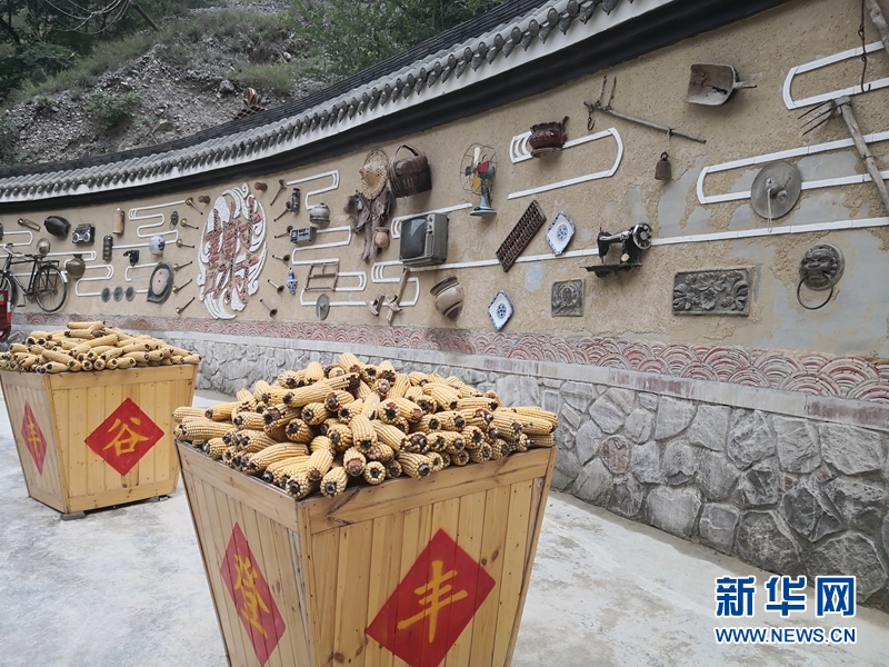 謝家村村民用廢棄的瓦片、瓷罐建起的“花開舟曲”小景觀。王生元 攝