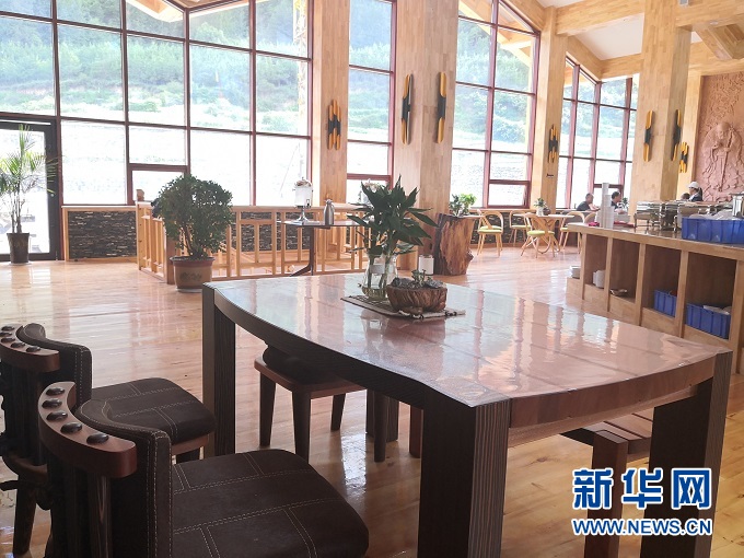 傍晚時分走進高吉村,錯落有致的民宿散落山間,落地窗透出暖黃色的燈光。房間里藏式床鋪與原生態(tài)家具相映成趣,靠窗的榻上擺放著茶幾、茶具、綠植,一覽無余的窗外夕陽半落、云飛鳥散。游客接待中心也一改傳統(tǒng)樣式,樓上是純木質(zhì)、開放式餐廳,樓下是小橋流水、曲徑通幽的水景,游客們?nèi)齼蓛傻暮戎Х?,享受著詩意的人生?/p>