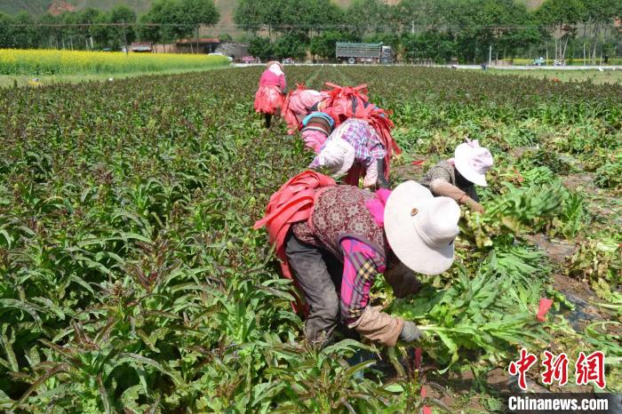 眼下正值青藏高原夏菜豐收的季節(jié),行走在青海省海南州貴德縣新街回族鄉(xiāng)的田地里,時常有在菜地里忙碌的村民。