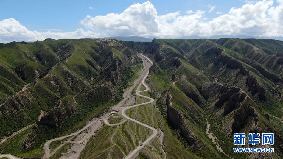 這是8月13日拍攝的進(jìn)入夏塘村的道路(無(wú)人機(jī)照片)。新華社記者 張龍 攝