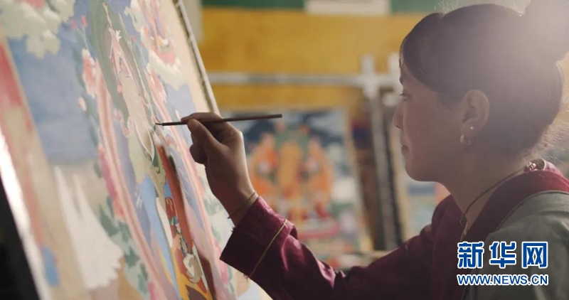 爐霍縣的貧困戶在唐卡實(shí)訓(xùn)基地免費(fèi)學(xué)習(xí)唐卡技藝。