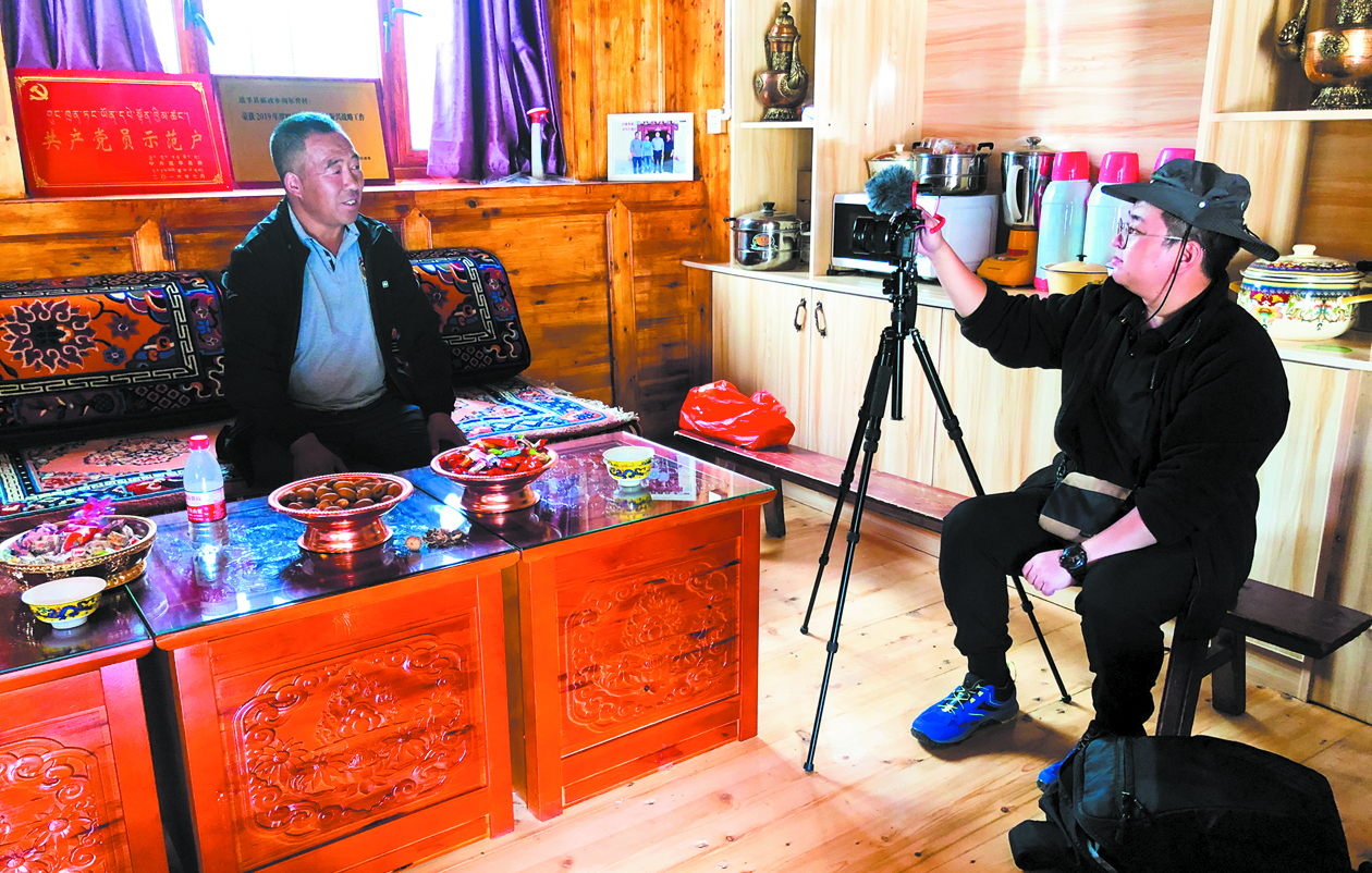 記者在溝爾普村采訪。于譚陽(yáng) 攝