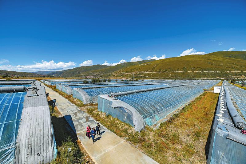 爐霍縣斯木鎮(zhèn)吉絨村飛地產(chǎn)業(yè)園區(qū),按照“土地集中、各村飛地、龍頭經(jīng)營、入股分紅”思路建起的蔬菜大棚基地。四川日報 楊樹 攝