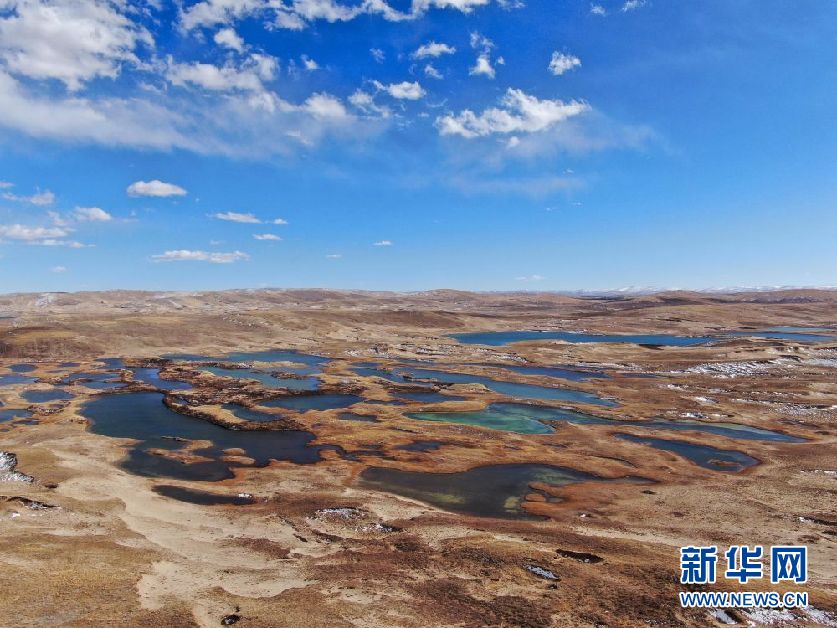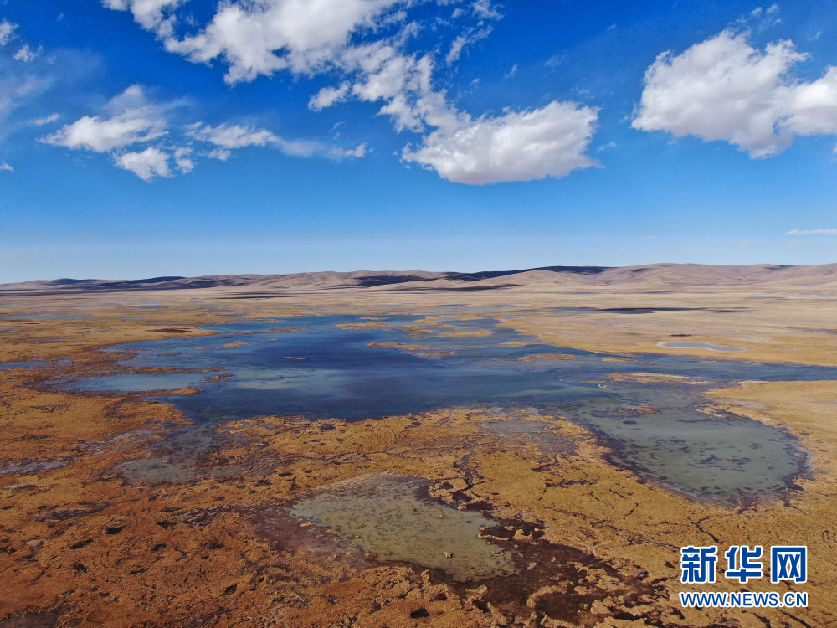 10月30日在青海省果洛藏族自治州瑪多縣境內(nèi)拍攝的一處濕地(無人機(jī)照片)。新華社記者 張龍 攝