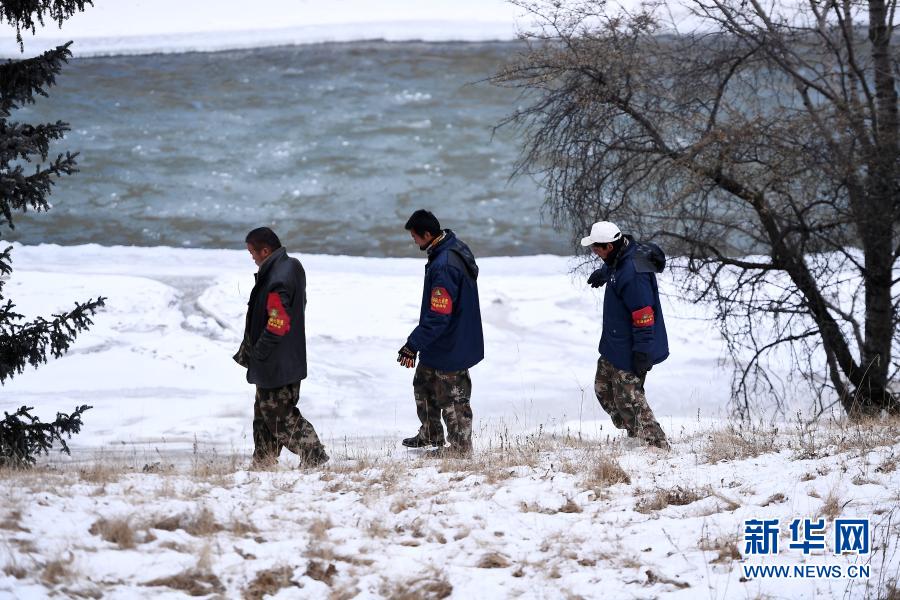 12月8日,祁連山國家公園扎麻什管護(hù)站生態(tài)管護(hù)員在黑河邊巡查。新華社記者 張宏祥 攝
