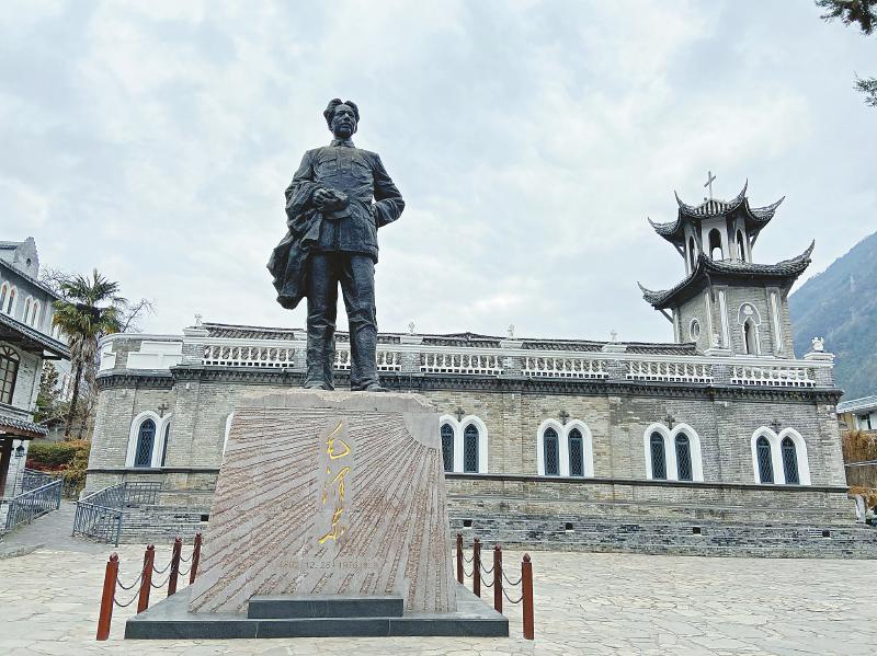 2004年,磨西天主教堂成為四川省重點(diǎn)文物保護(hù)單位。2015年5月30日,天主教堂一旁的磨西紅軍長征紀(jì)念館正式開館?,F(xiàn)在,這里成為中外游人瞻仰革命故地、感受紅軍長征精神的必去之地?!懊磕陙砟ノ鲄⒂^的民眾絡(luò)繹不絕?!毙苌辛终f,“2015年至2018年期間,磨西先后迎來很多紅軍后代參觀,其中包括周恩來、陳賡、宋任窮、張?jiān)埔?、劉亞樓、孫繼先等革命先輩的后人?!?/p>
