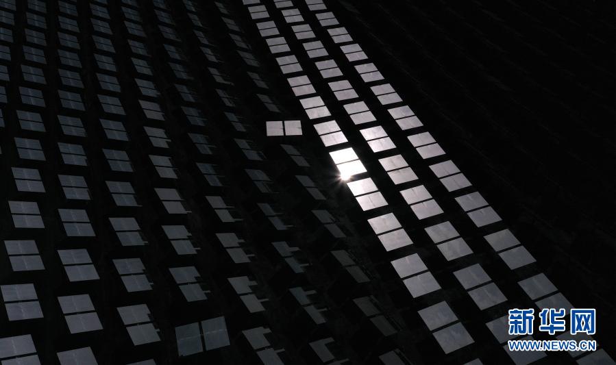 3月3日拍攝的位于青海省海南藏族自治州共和縣光伏產(chǎn)業(yè)園內(nèi)的一處塔式光熱發(fā)電項(xiàng)目(無(wú)人機(jī)照片)。 新華社記者 張宏祥 攝