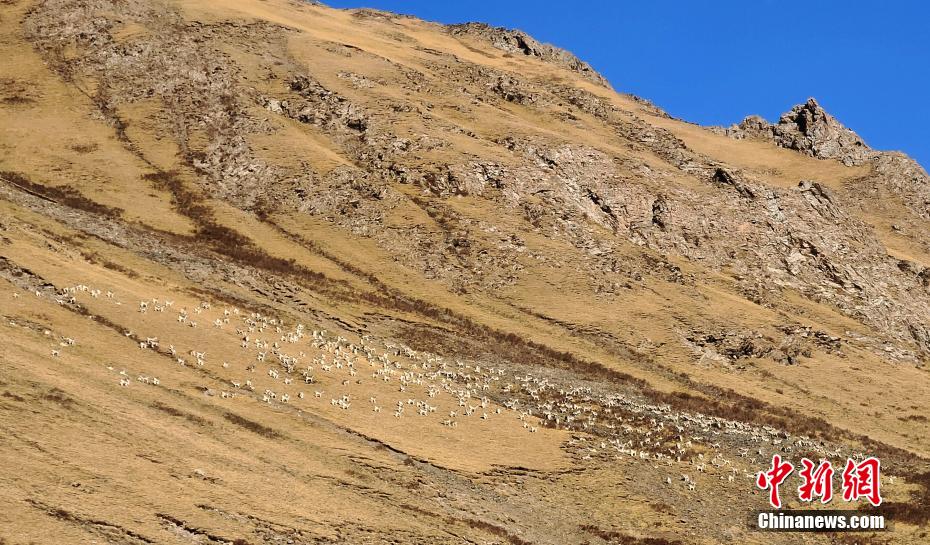 位于青海省南部的三江源區(qū)域,包括長江源(可可西里)、黃河源、瀾滄江源,是青藏高原生態(tài)系統(tǒng)的典型代表,分布雪豹、藏羚羊、野牦牛、黑頸鶴等珍稀物種,被稱“高原野生動(dòng)物王國”、“高寒生物種質(zhì)資源庫”。圖為巖羊群。曲麻萊管理處 供圖