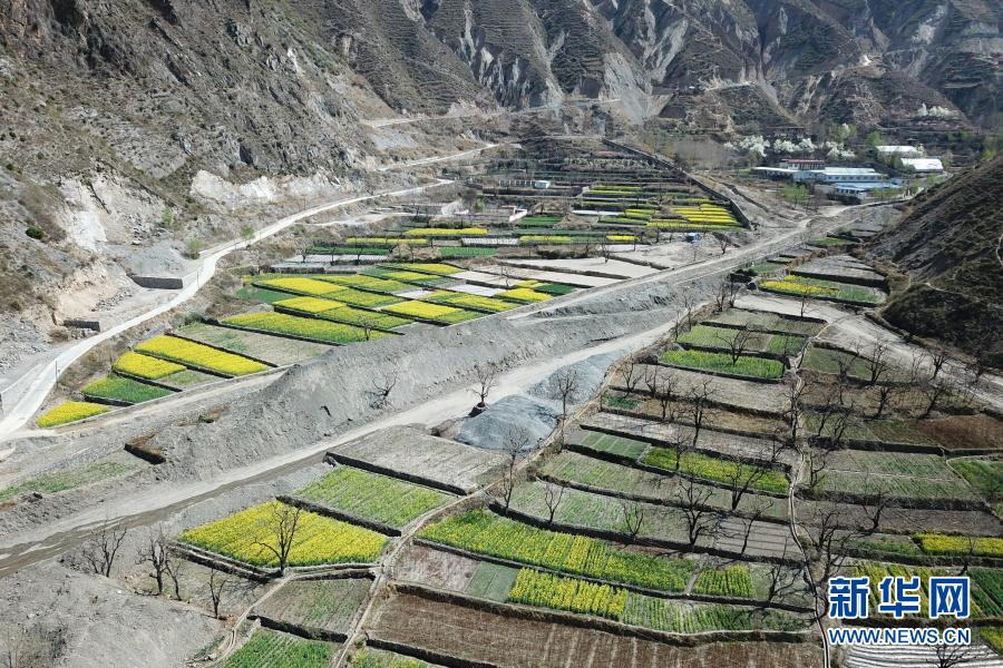 這是3月17日在舟曲縣大川鎮(zhèn)境內(nèi)拍攝的油菜花(無人機照片)。新華社記者 范培珅 攝