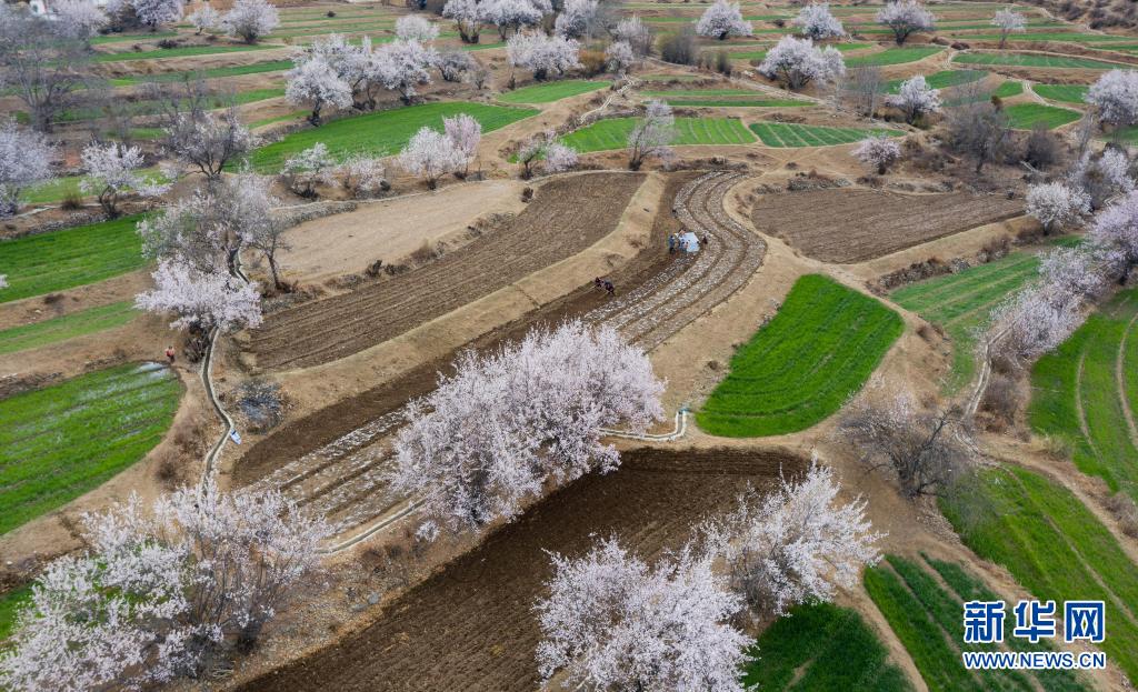 4月3日,在得榮縣白松鎮(zhèn)奪松村,當(dāng)?shù)夭刈迦罕娫诖焊o(wú)人機(jī)照片)。新華社記者 江宏景 攝