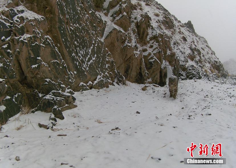 圖為渡河雪豹展現(xiàn)靈動(dòng)身姿。張蓉芝 攝