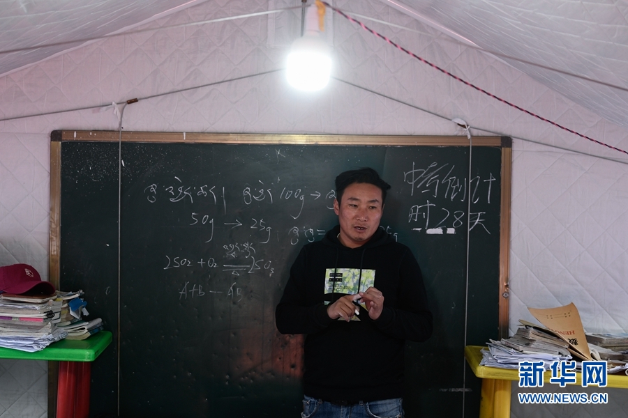 5月23日,瑪多縣民族寄宿制中學(xué)教師在上課。新華社記者 張龍 攝
