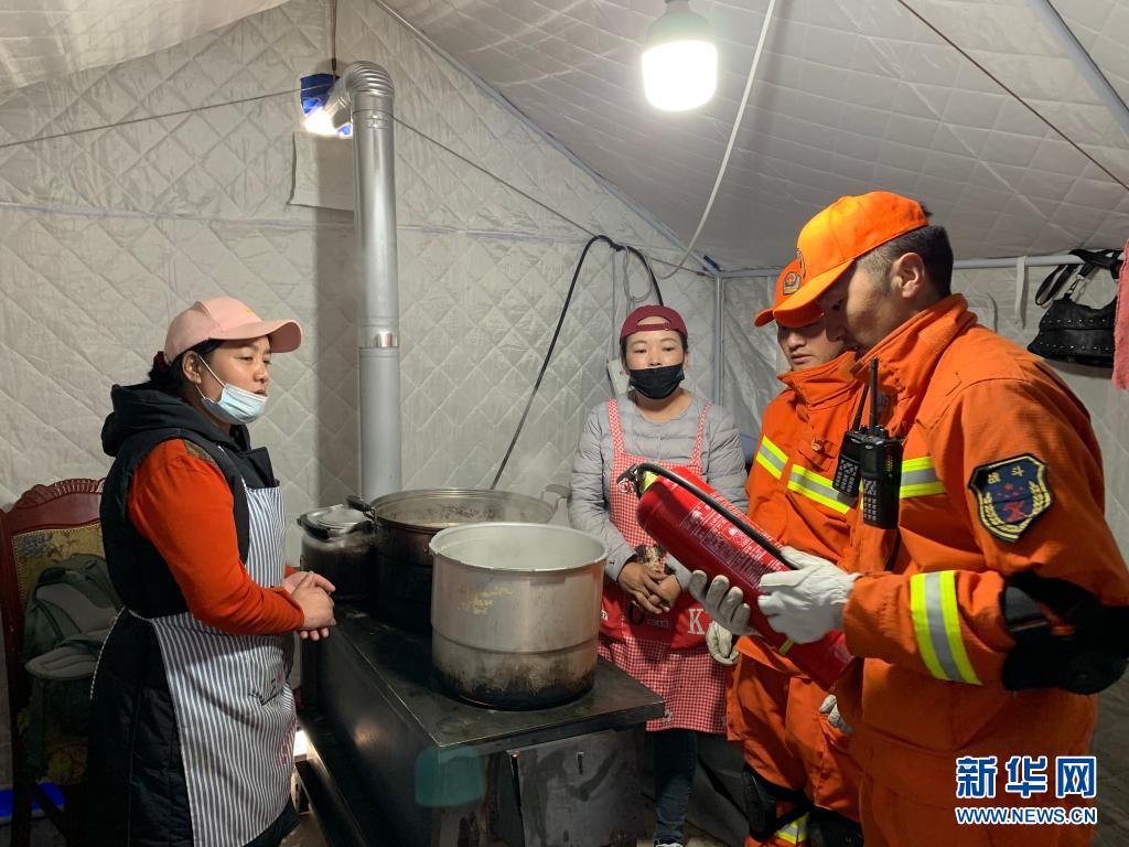 25日,青?,敹唷?·22”7.4級地震災(zāi)后第四天,瑪多縣城飄起小雪。青海省玉樹藏族自治州消防救援支隊消防員群英尕丁,又來到瑪多縣民族寄宿制中學(xué)的安置區(qū)日常巡查。