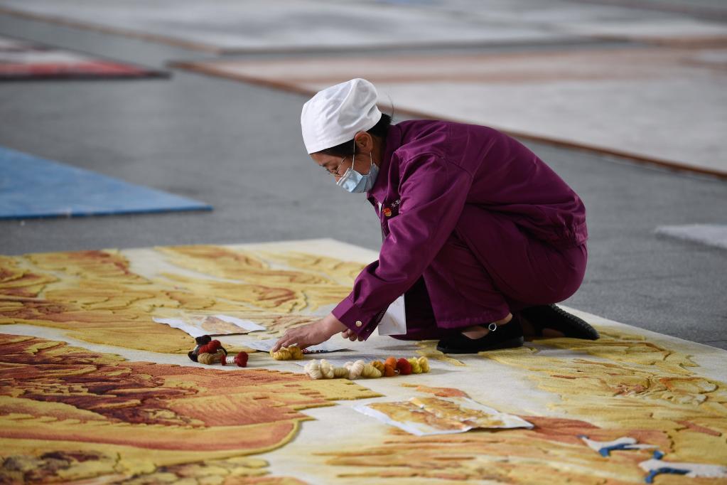 6月7日,在青海圣源地毯集團有限公司的生產(chǎn)車間內(nèi),工人正在對藏毯進行處理。新華社記者 張龍 攝